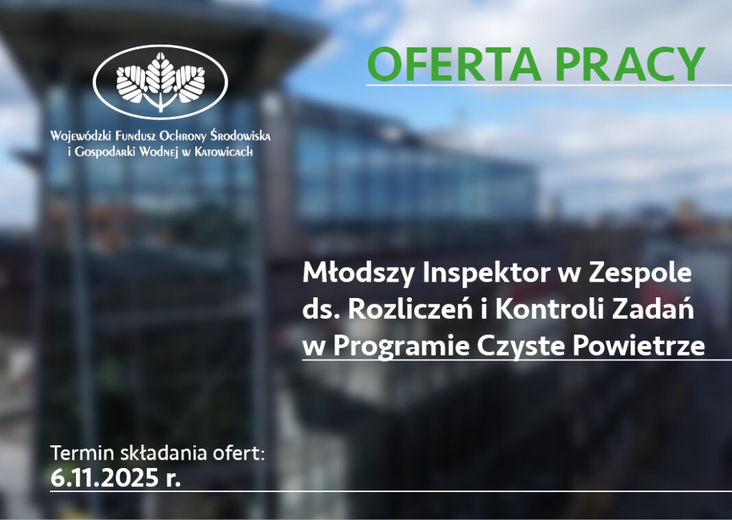Młodszy Inspektor w Zespole ds. Rozliczeń i Kontroli Zadań w Programie Czyste Powietrze – 2 stanowiska 2025-10-24 4313 Data publikacji: 24.10.2025Ogłoszenie nr: MIRCP/10/25 Termin składania aplikacji: do 6.11.2025 roku Treść ogłoszenia24.10.2025 Listakandydatów Informacja o wyniku naboru Regulamin naborukandydatów Kwestionariusz osobowy Oświadczenie kandydata
