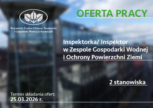 Data publikacji: 10.03.2026Ogłoszenie nr: IGW/03/26 Termin składania aplikacji: do 25.03.2026 rokuMiejsce wykonywania pracy:siedziba Funduszu w Katowicach oraz obszar działania WFOŚiGW w Katowicach Treść ogłoszenia10.03.2026 Listakandydatów3.04.2026 Informacja o wyniku naboru Regulamin naborukandydatów Kwestionariusz osobowy Oświadczenie kandydata