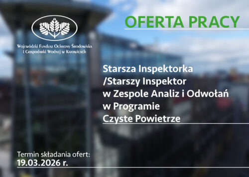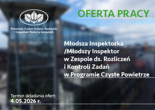 Data publikacji: 30.03.2026Ogłoszenie nr: EPR/03/26 Termin składania aplikacji: do 14.04.2026 rokuMiejsce wykonywania pracy:siedziba Funduszu w Katowicach oraz obszar działania WFOŚiGW w Katowicach Treść ogłoszenia30.03.2026 Listakandydatów Informacja o wyniku naboru Regulamin naborukandydatów Kwestionariusz osobowy Oświadczenie kandydata