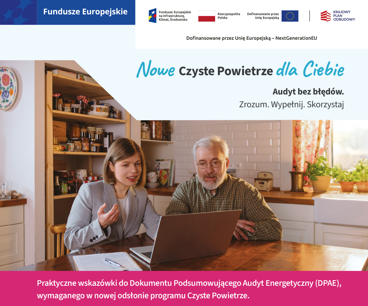 Z myślą o wszystkich uczestnikach Programu Priorytetowego „Czyste Powietrze”, udostępniamy praktyczny poradnik „Audyt bez błędów – Zrozum. Wypełnij. Skorzystaj.”. Zawiera on praktyczne wskazówki do Dokumentu Podsumowującego Audyt Energetyczny (DPAE), wymaganego w nowej odsłonie programu Czyste Powietrze, do którego nabór ruszył 31 marca 2025 r.
