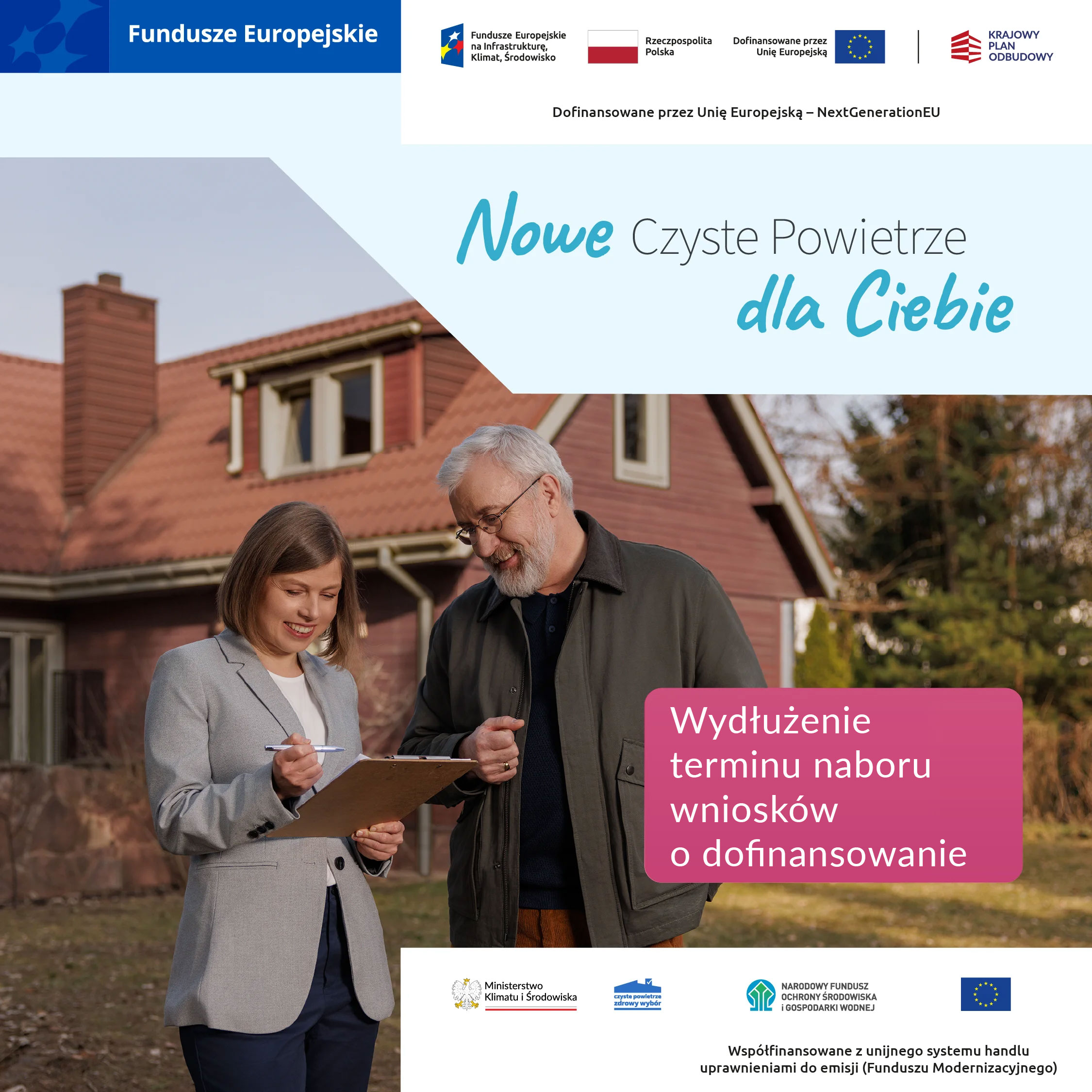 OGŁOSZENIE O WYDŁUŻENIU TERMINU NABORU WNIOSKÓW O DOFINANSOWANIE w ramach części 5) Programu Priorytetowego „Czyste Powietrze” dla Beneficjentów, których dotyczy wznowienie naboru wstrzymanego 28.11.2024 r.